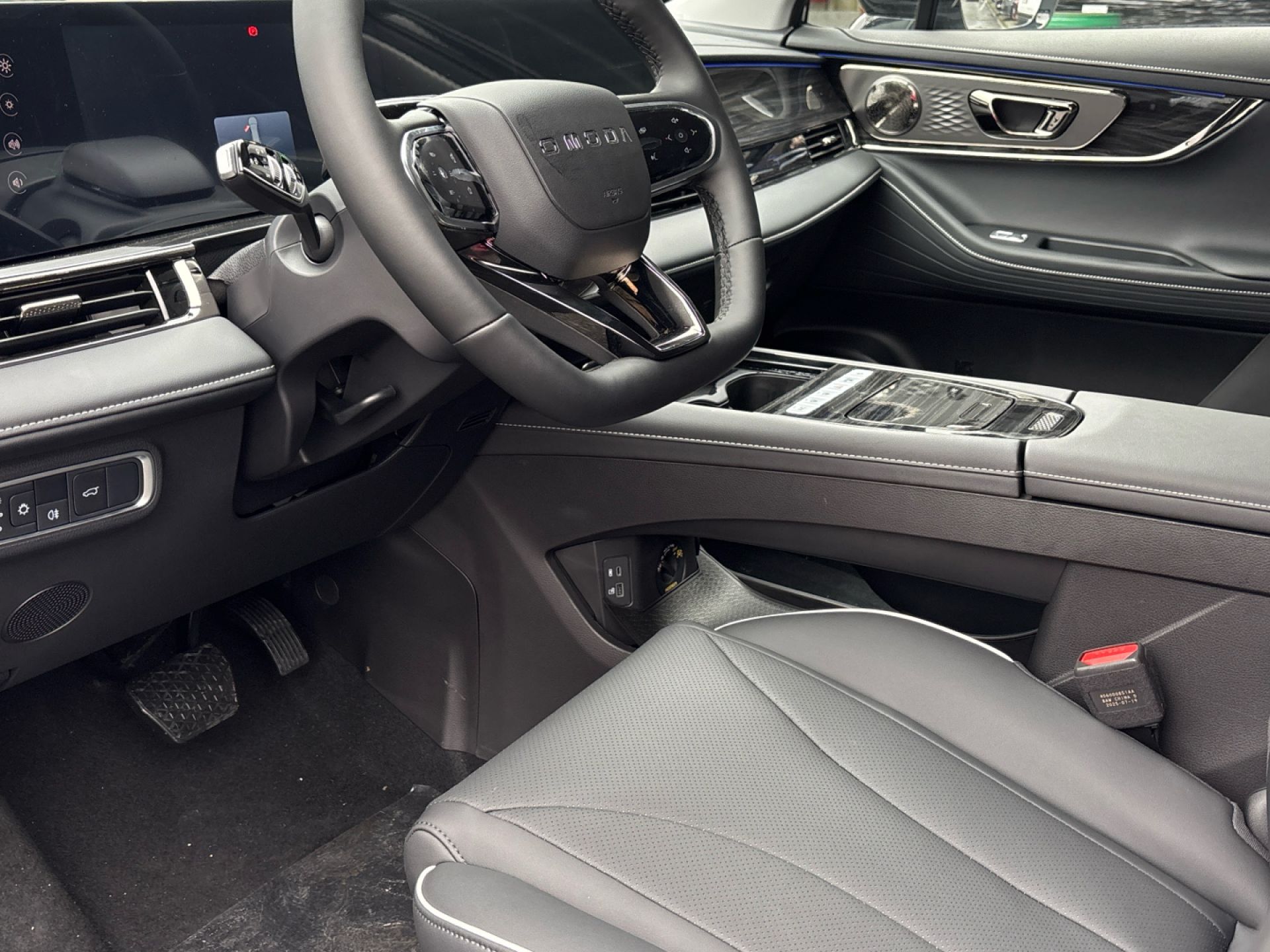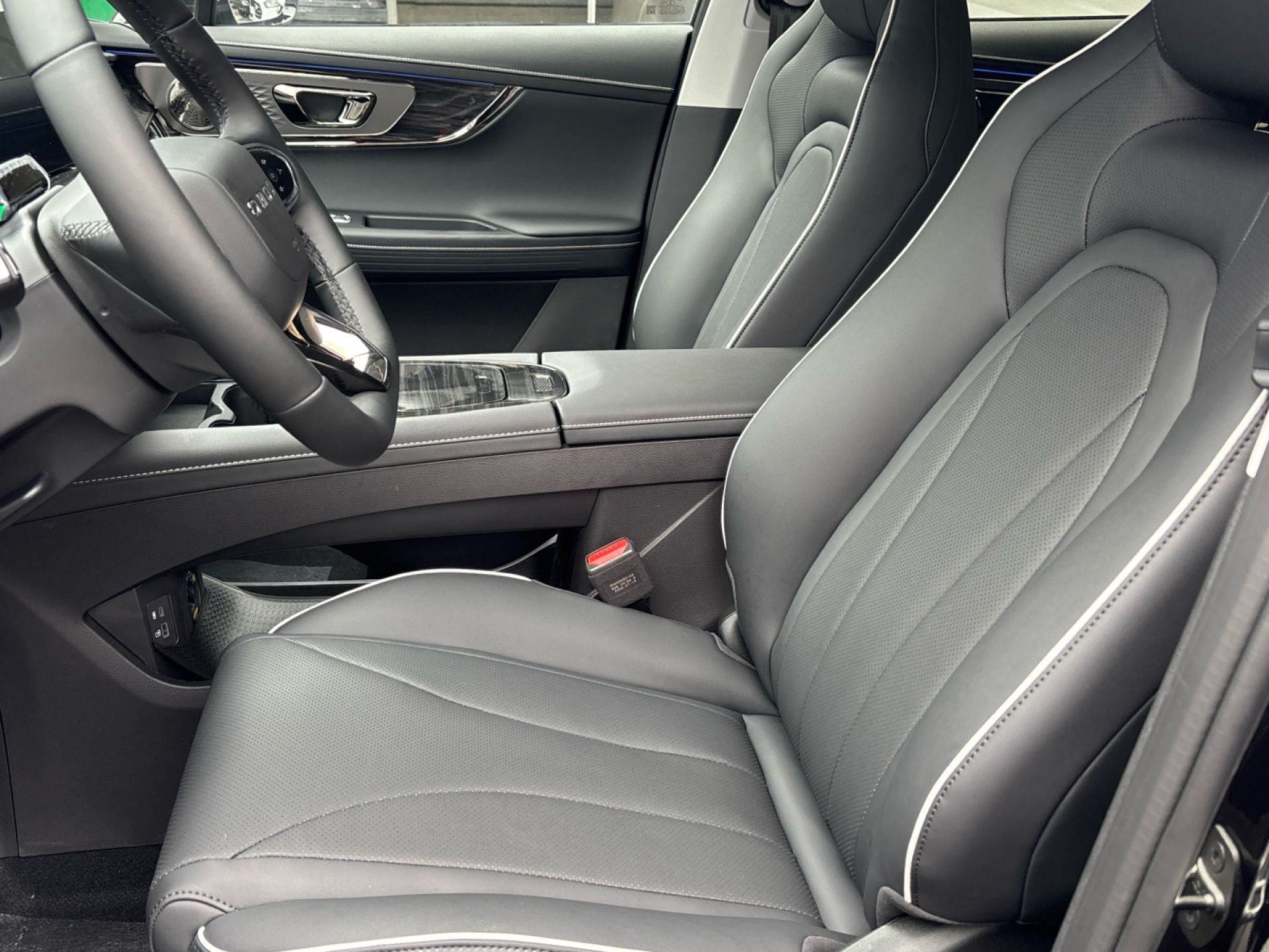 - Acabados de lujo: consola central en negro piano, puertas en cuero sintético y tablero en aluminio y cuero sintético